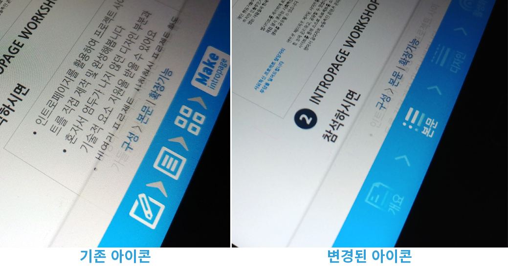 이를 개선하고자 기본 아이콘의 변경과 더불어 한글을 함께 병기하였습니다. 좀 더 가독성을 높이고자 했는데, 의도가 잘 반영된 것 같나요 :)?